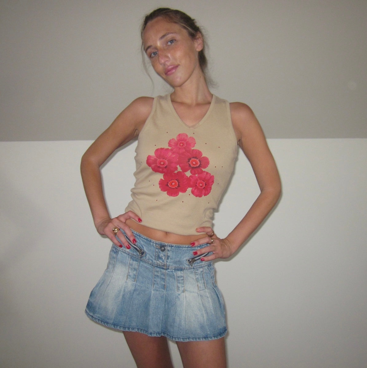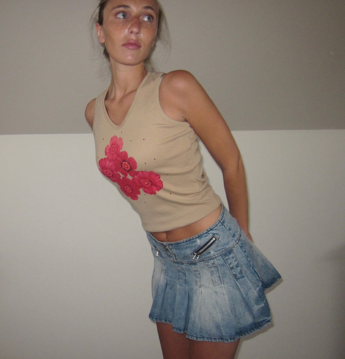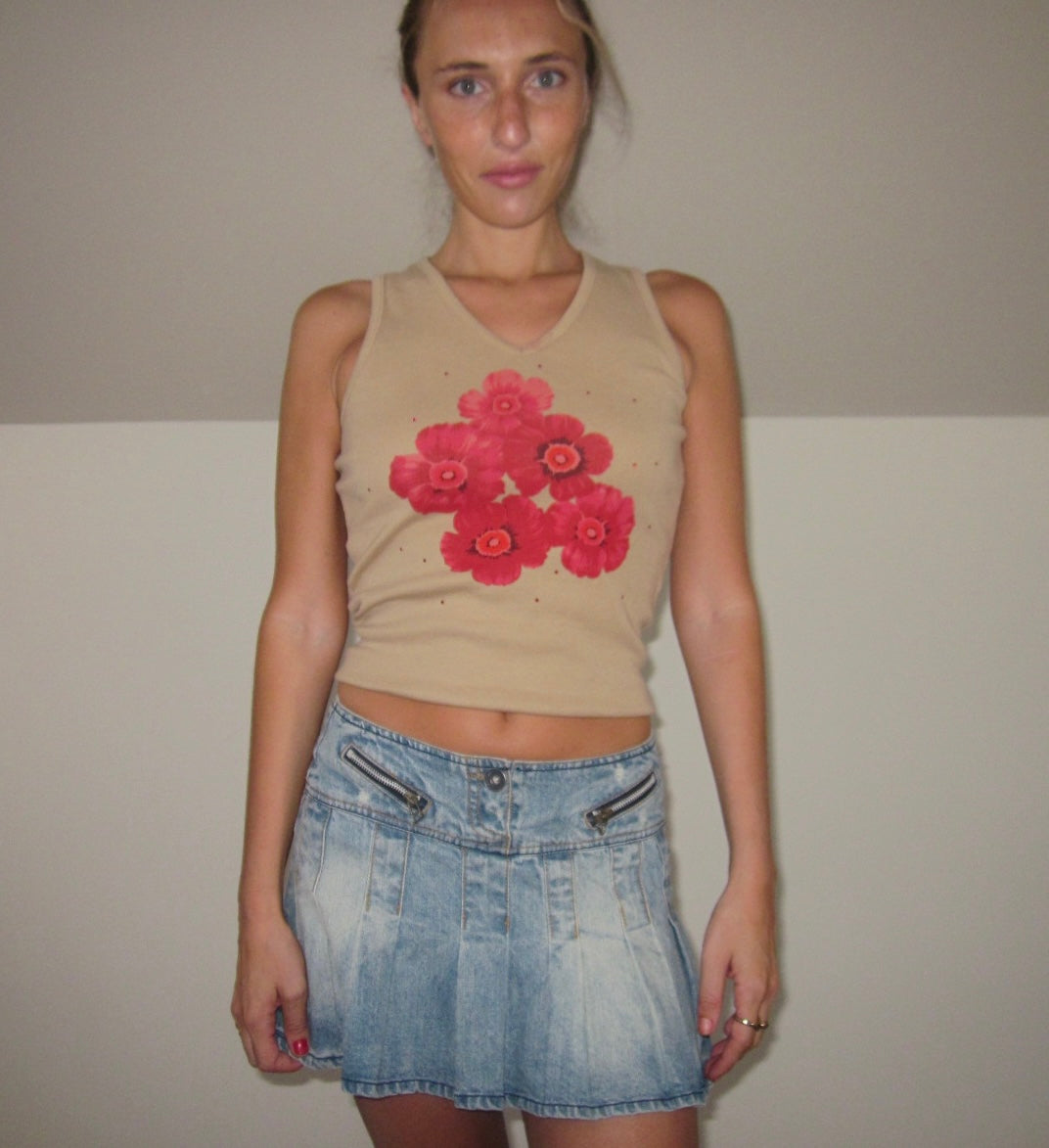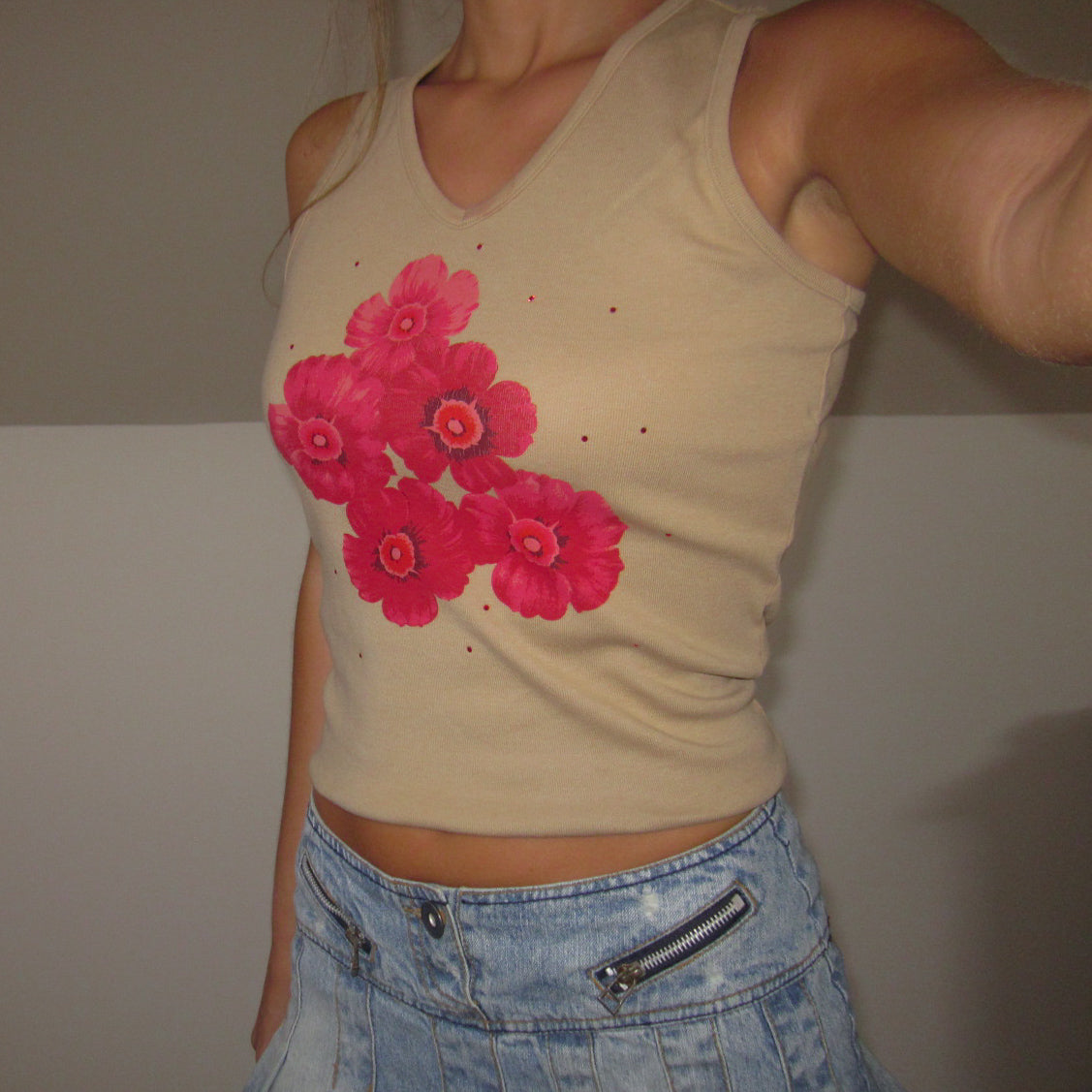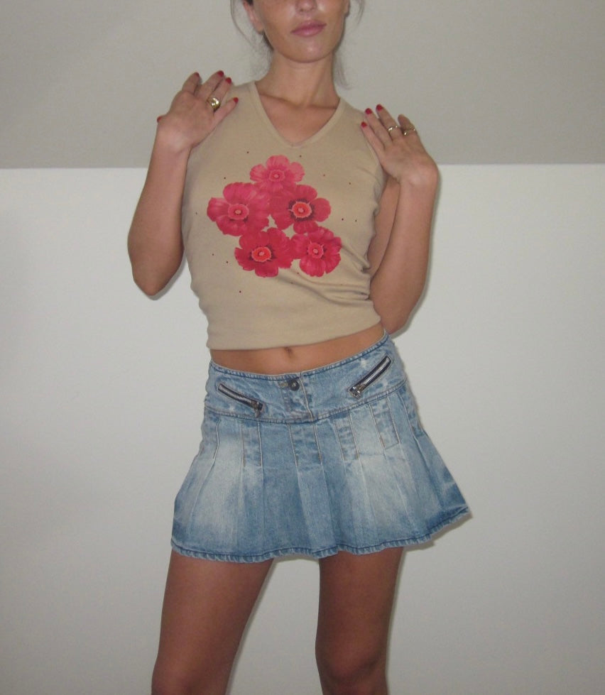 Talla S. Camiseta mit langen Ärmeln aus Tiranten, beige, mit Dibujo aus rosafarbenen Blumensträußen auf der anderen Seite. Escote en V. Elastisches Material, das sich dem Körper anpasst. Ideal für den Winter. Perfekte Bedingungen. (Das Modell hat eine Größe von XS/S und eine mittlere Höhe von 1,72 cm).